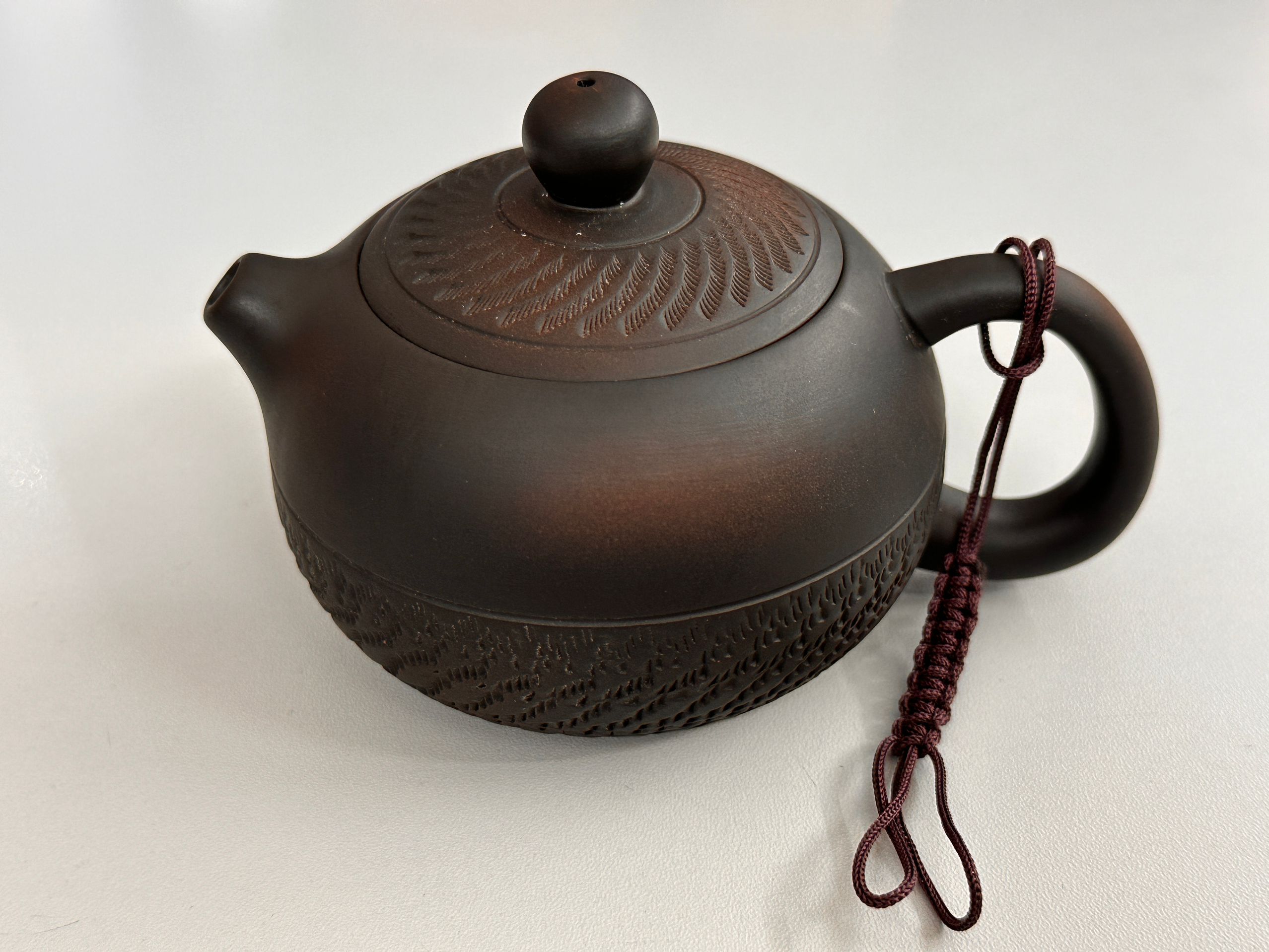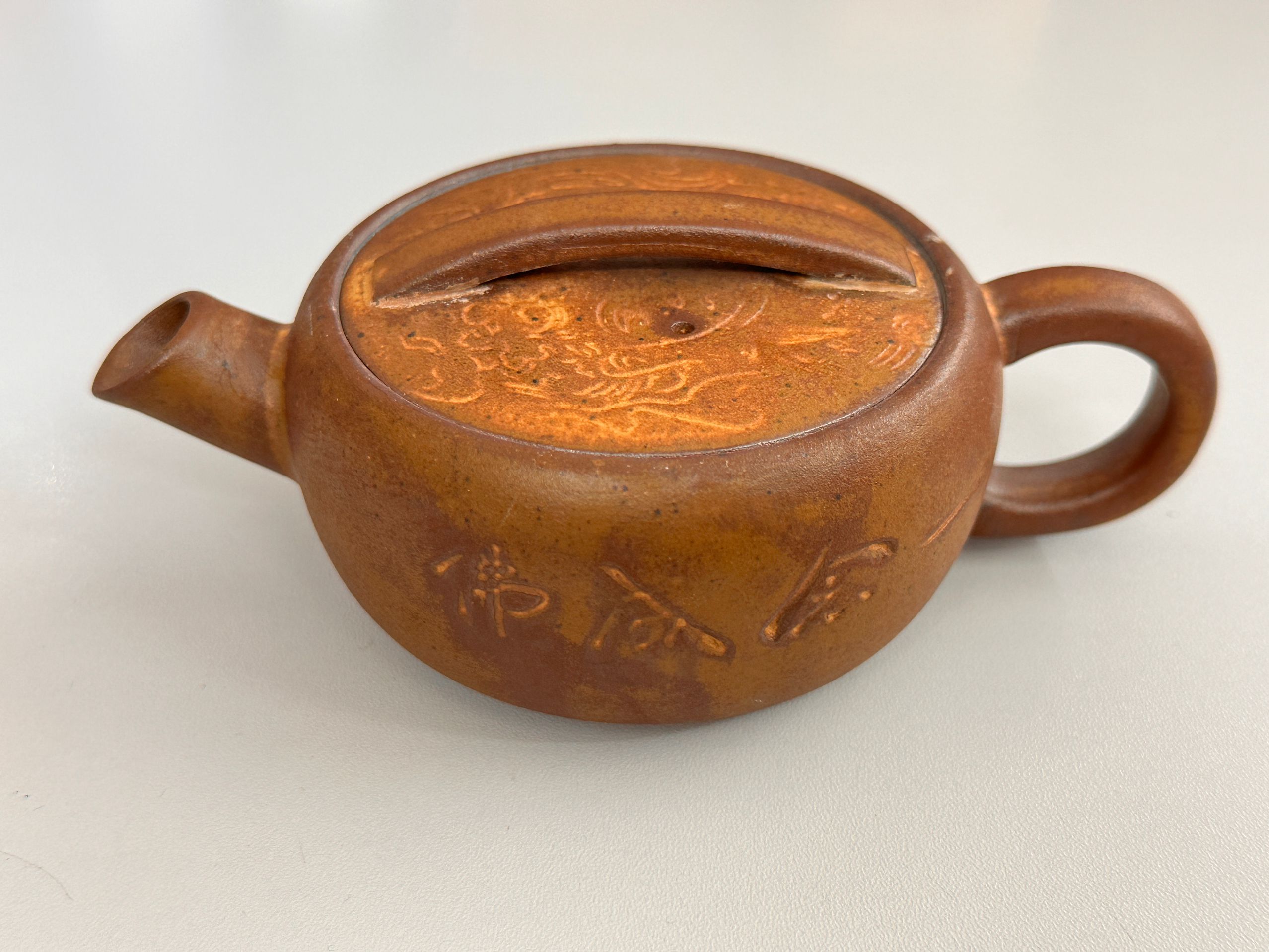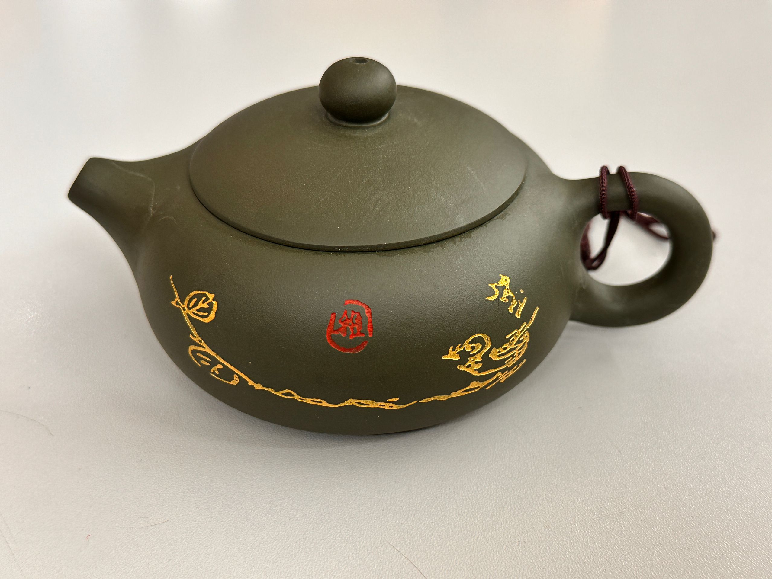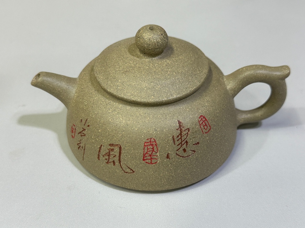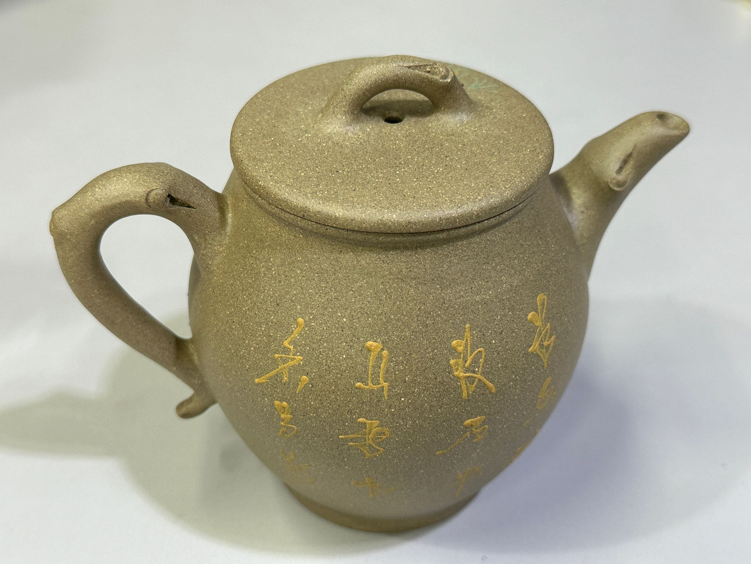 CJ-85 宜興原礦綠泥紫砂刻絵鳥茶壺