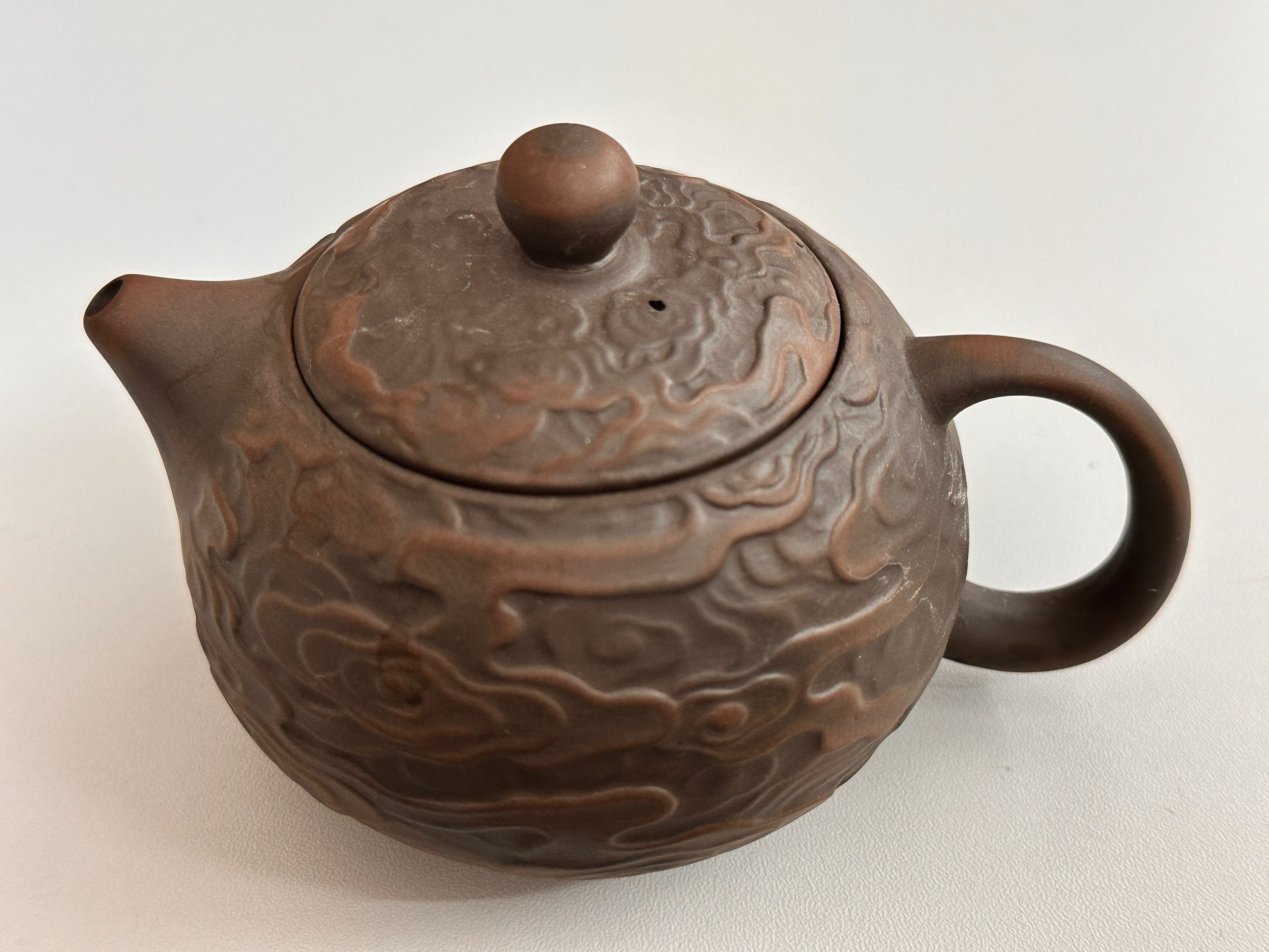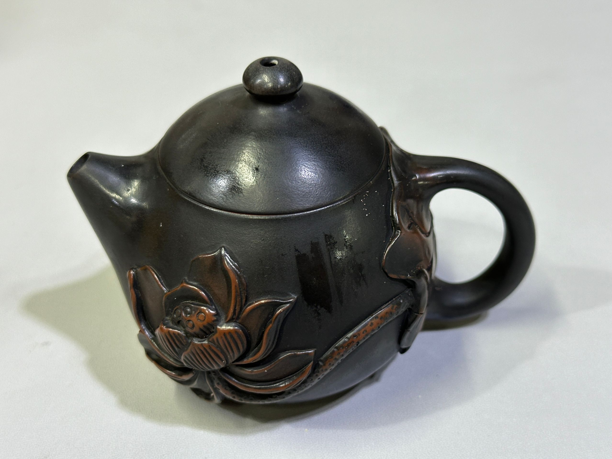 CJ-25 紫陶瓷小號浮雕荷花龍蛋茶壺